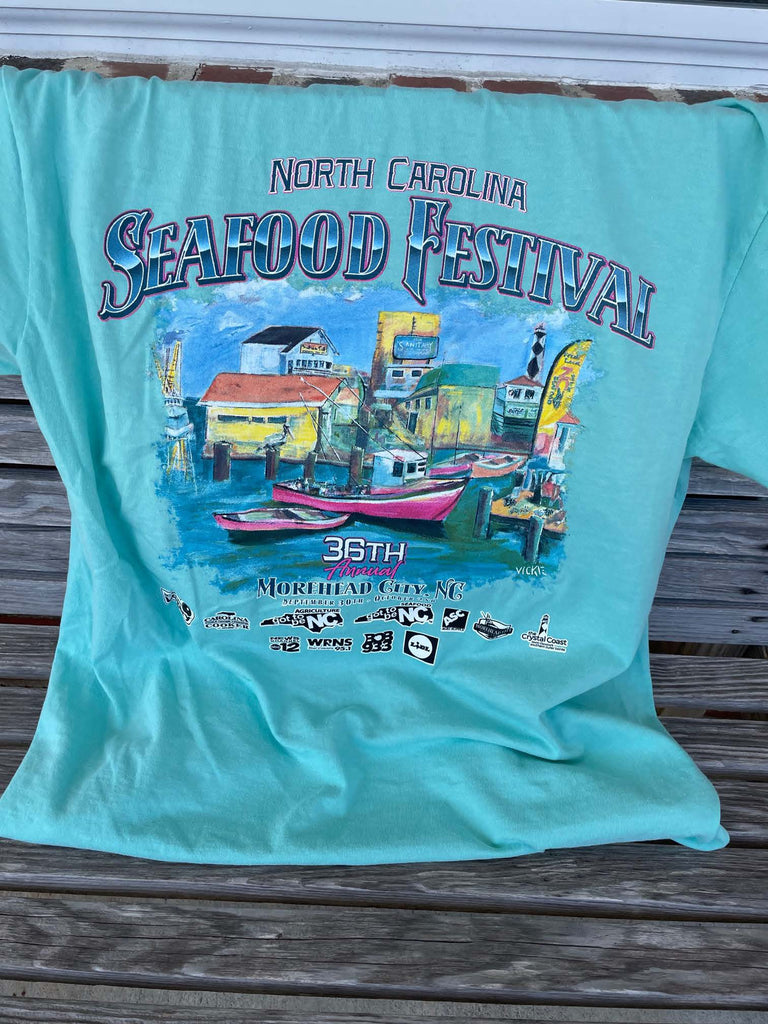 2022 NC Seafood Festival T Shirt Chalky Mint with Pocket ON SALE